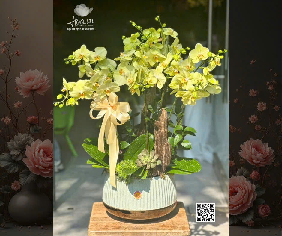 • Ý nghĩa: Chậu lan xanh táo là món quà lý tưởng để thể hiện sự trân trọng gu thẩm mỹ tinh tế của người nhận. Sự kết hợp với lũa còn mang ý nghĩa về sự gắn kết, bền vững và vẻ đẹp vượt thời gian.
